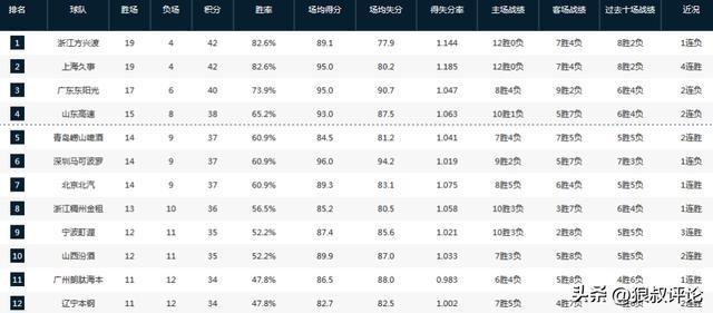 CBA第一阶段完整排名:广厦上海争第1 中游竞争惨烈 四川0胜23负